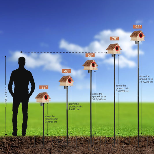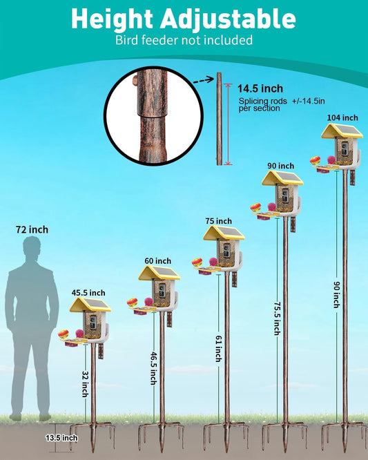 Smart Bird Feeder Pole - (32-92 Inch) Adjustable Bird House Pole Compatible with BirdBuddy, Outdoors Weather Station and Variety of Smart Birdhouse Styles, Heavy Duty Bird Feeder Stand Mount Kit