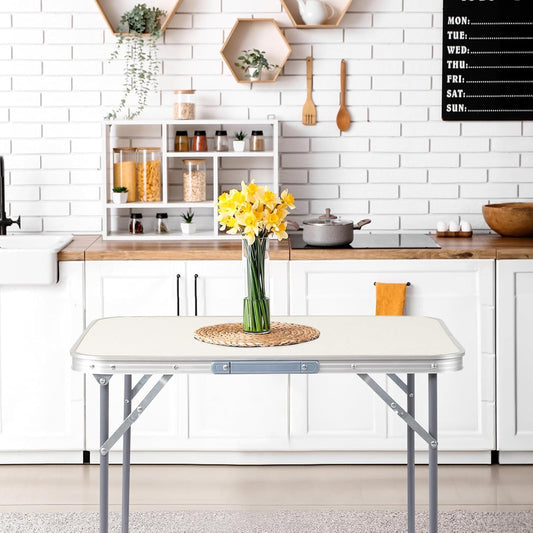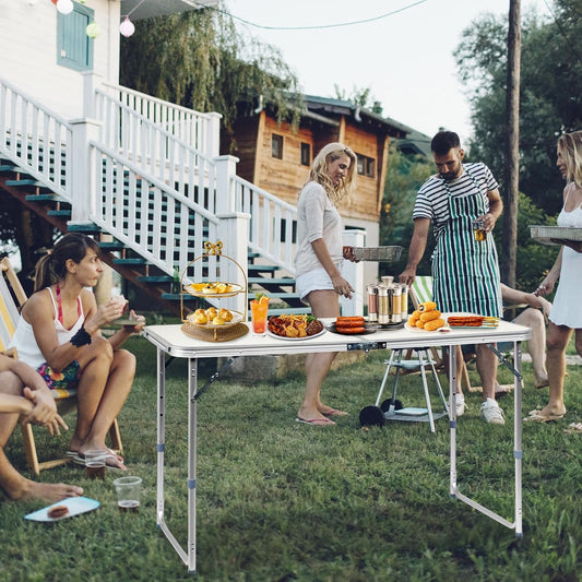 3.0 Ft Folding Portable Camping Table with Adjustable Height Aluminum Legs for Kitchen, BBQ, Dining, Picnic, Cooking, Beach, Garden, Party, Traval, Party, 4-6 People