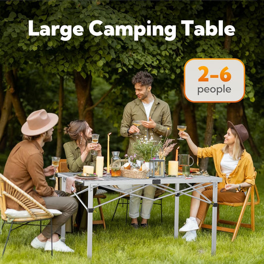 Large 46.4" Camping Table for 2-6 People - 220lbs Capacity Heavy Duty Foldable Outdoor Table with Aluminum Roll-Up Top & Carry Bag, Portable Picnic Desk for BBQ, Tailgating, Backyard (Silver)