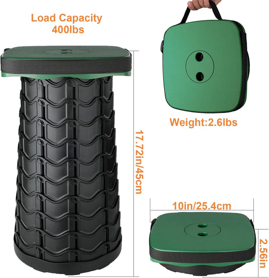 Telescopic Stool,20.4" Portable Seat, Collapsible Chair with Carabiner for Camping/Fishing/Hiking/BBQ/Music Festival - Max Capacity 770lbs