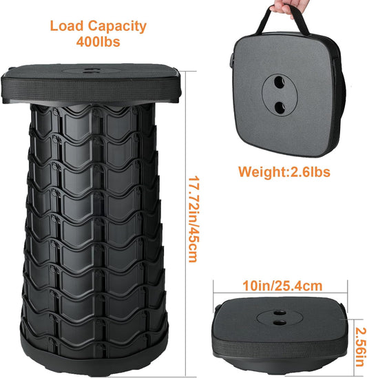 Portable Collapsible Stool, Lightweight & Sturdy, Adjustable Height Telescopic Folding Stool for Adults, Retractable Camping Chair, Telescoping Seat or Footrest for Home & Outdoors, 18"H Max 400lb