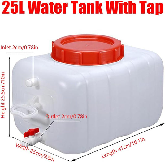 Plastic Water Storage Carrier with Tap 25L/35L/50L/80L/110L/200L Water Tank Dispenser Emergency Water Container for Camping Caravan Hiking Outdoor(Size:6.6Gal/25L)