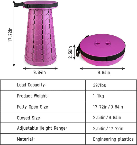 Retractable Folding Stool - Heavy Duty 400 lb Collapsible Portable Stool for Camping, Hiking, Fishing, Indoor/Outdoor with Non-Slip Base and Lightweight Design (Purple Yellow, 1-Pack)