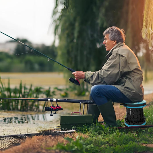 Upgraded Collapsible Stool with Max Load Capacity 330lbs Portable Telescoping & Folding Design Retractable Seat for Camping, Gardening, Fishing & Outdoor Adventures (Blue)