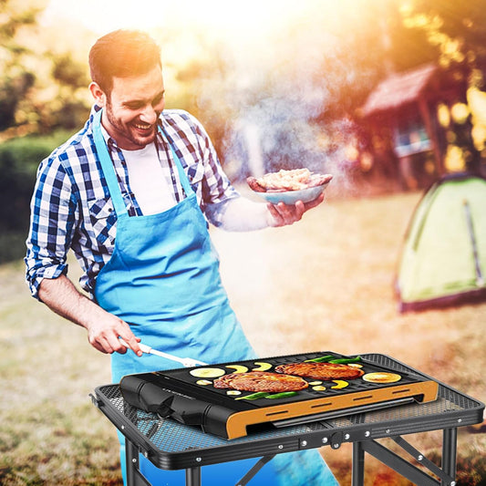Camping Table Grill 4 Height Adjustable Small Folding 2FT Foldable Picnic Portable Grill Stand Mesh Outdoor Beach BBQ RV Black