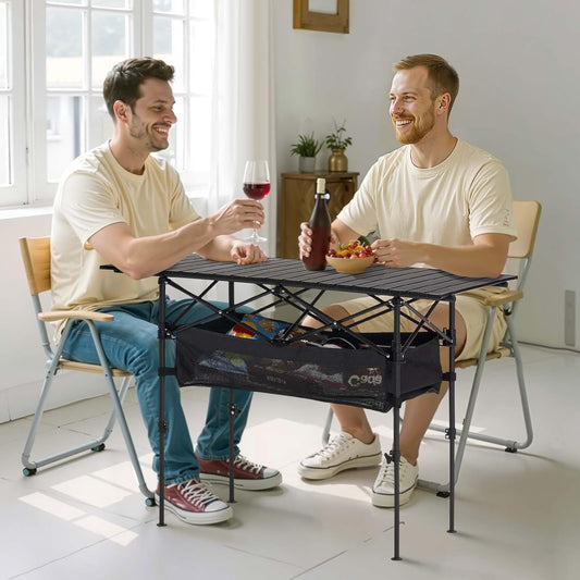 Folding Table and Stool, Small, Black, 4 Foot Outdoor Portable Table, Adjustable Height, Camping, Picnic, RV Table, 55lbs Load-Bearing, Lightweight