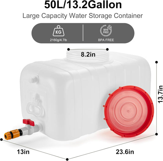 13.2 Gallon Water Tank with Faucet, Water Storage Container for Camping, Portable First Aid Water Storage for Outdoor Hiking, RV, Autonomous Driving Tour, 23.6 x 13 x 13.7in
