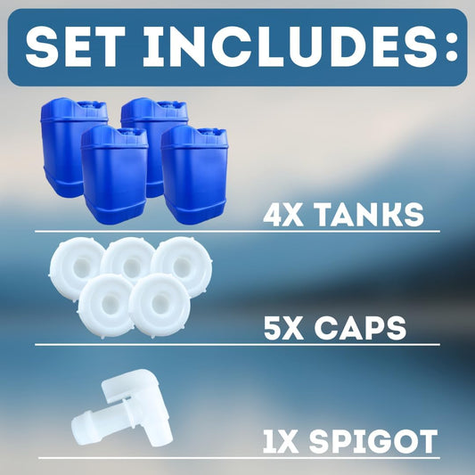 Emergency Water Storage Containers - 5 Gallon Each Water Storage Tank w/Lids + Spigot - Water Storage Container, Emergency Water Container, Survival Storage Tank - Stackable (20 Gallons (4 Tanks))