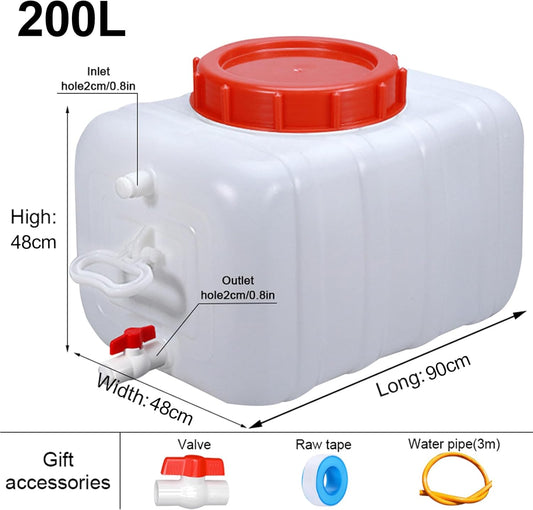 Water Storage Containers Water Carrier Plastic Water Tank with Tap Emergency Water Container 50L/80L/110L/200L Water Bucket Jug for Hiking Camping Driking Outdoors Indoors(Size:200L)