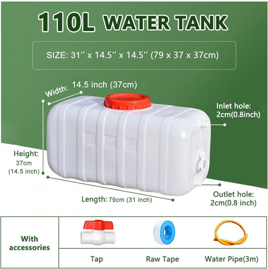Large Water Storage Tank BPA Free Water Jug Container with Spigot, Portable Food Grade Plastic with Wide Opening for Outdoor Camping Hiking RV Emergency(Size:110L,Color:White)