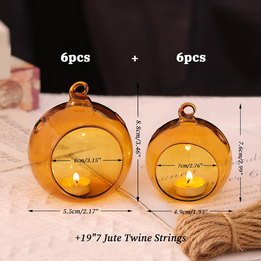 LETINE Assorted Amber Glass Orb Set (12pcs) with 2.17" & 1.93" Spheres - Versatile Tea Light Candle Holders & Air Plant Holders for Boho Wedding Decor