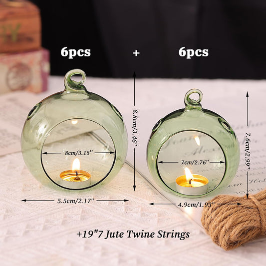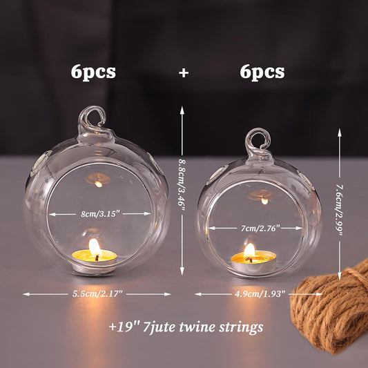 12 Pcs 3.15"/ 8cm Hanging Glass Tealight Holder Globe with LED Tealight, Plant Terrariums Glass Orbs Air Plants Tea Light Candle Holders Home Decor Indoor Outdoor Garden DIY Gifts (12 Pcs)