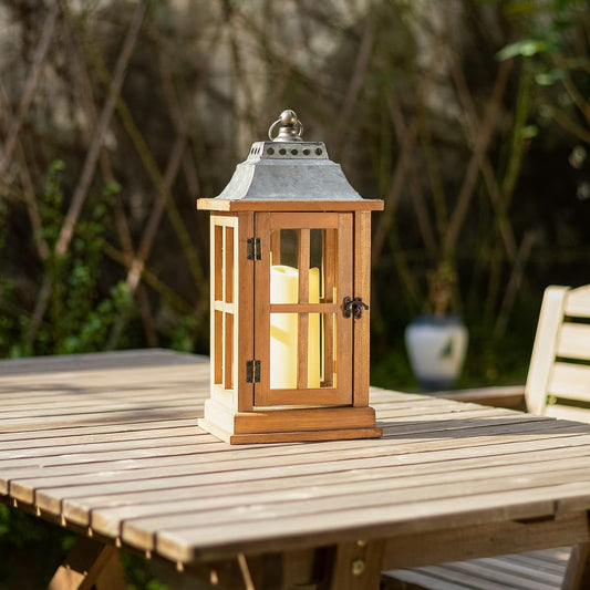 Bdor 2 Pack 16 Inches Metal and Tempered Glass Decorative Lantern with Electronic Wax Effect - Indoor/Outdoor Decorative Lighting, Handcrafted Aesthetic, Perfect for Home, Parties, and Holiday Decor
