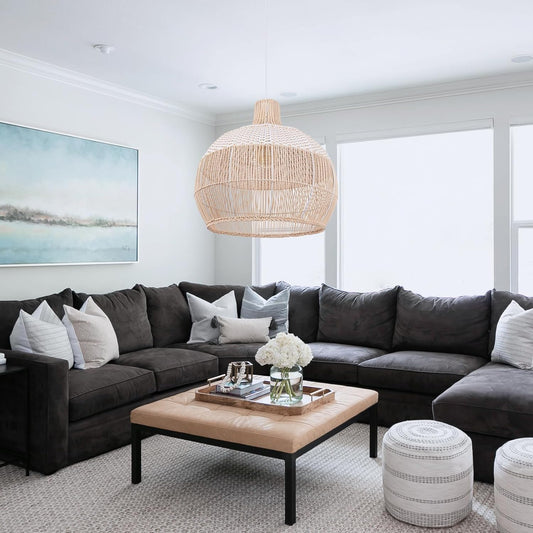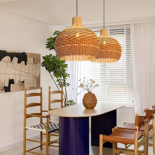 Arturesthome Rattan Pendant Lights, Wicker Chandelier Boho Basket Lighting Fixture, Natural Woven Hanging Lamp for Kitchen Island Sink Coffee