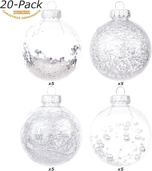 Sea Team Shatterproof Clear Plastic Christmas Ball Ornaments Decorative Xmas Balls Baubles Set with Stuffed Delicate Decorations (80mm/3.15 inch 20-Pack, Silver)