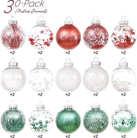 Sea Team 60mm/2.36" Shatterproof Clear Plastic Christmas Tree Ball Ornaments Set, Decorative Hanging Transparent Xmas Baubles with Stuffed Delicate Decorations (30 Counts, Elf)