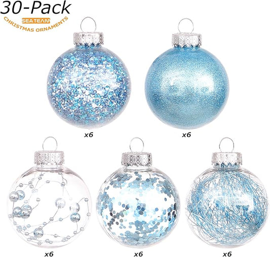 Sea Team Shatterproof Clear Plastic Christmas Ball Ornaments Decorative Xmas Balls Baubles Set with Stuffed Delicate Decorations (60mm/2.36 inch 30-Pack, Babyblue)