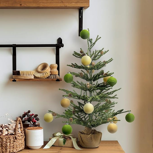 KI Store Moss Green Velvet Christmas Balls 25pcs Flocked Christmas Tree Ornaments for Xmas Holiday Hanging Decor