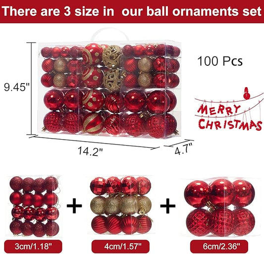 100PCS Shatterproof Christmas Tree Ball Ornaments, Assorted Baubles Set with Glitter - For Holiday Decor