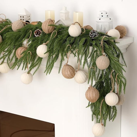 Syhood 12 Pcs Rustic Christmas Ball 2.36 Inch Neutral Farmhouse Christmas Tree Ornaments Shatterproof Hanging Cottage Burlap Fabric Textured Ball for Xmas Tree Party Garlands Wreath Home Decor