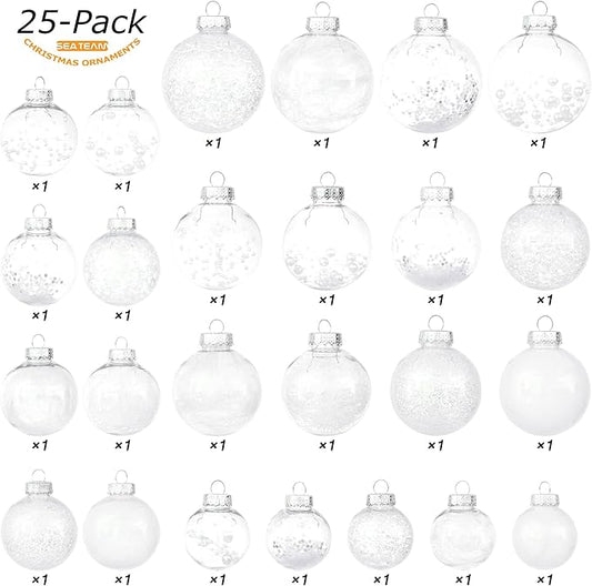 Sea Team Christmas Baubles Set Clear Plastic Shatterproof Multi-Size Decorative Christmas Baubles with Stuffed Delicate Decorations (25 Pieces, White)