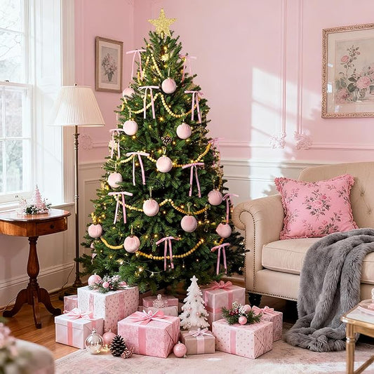 Velvet Christmas Ornaments Balls for Tree - 15pcs Pink Christmas Ornaments Shatterproof for Xmas Decorations - Multicolor Pink & Beige 80mm 3.15inch