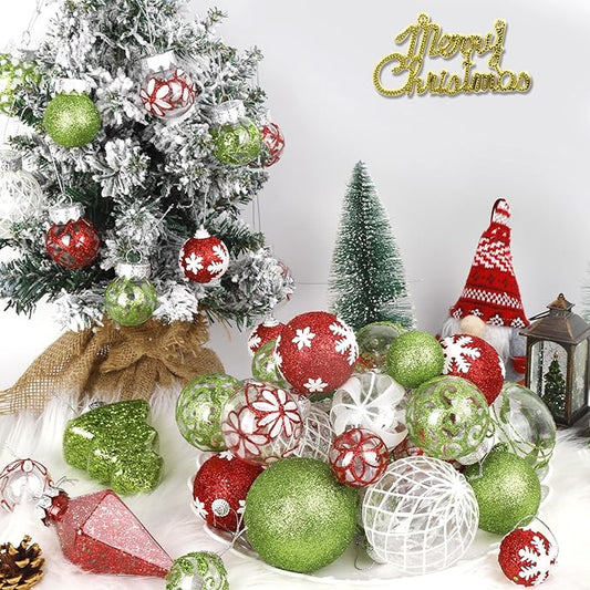 43 PCS Christmas Ball Ornaments Set, Clear Plastic Shatterproof White Red and Green Christmas Ornaments Hanging Balls Baubles Xmas Tree Decorations for Holiday Home Indoor Wedding Party Decor