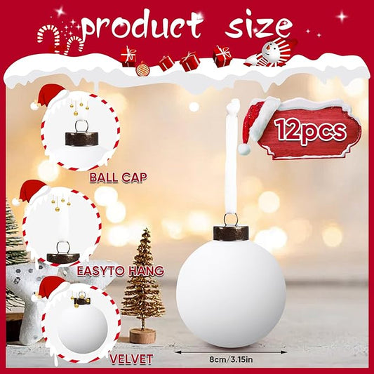Velvet Christmas Balls Bulk Shatterproof Plastic Christmas Tree Decorations for Decorative Hanging Baubles (12, White, 3.15Inch)