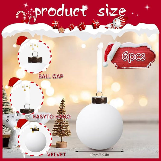 6 PcsVelvet Christmas Balls Bulk Shatterproof Plastic Christmas Tree Decorations for Decorative Hanging Baubles (6, White, 3.94Inch)