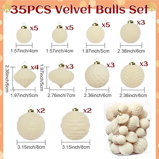 Velvet Ball Ornaments Christmas Balls Cream-Beige 35 PCS Xmas Tree Flocked Ball Ornaments Assortment for Party Garland Wreath Decor Baby Shower First Christmas Decorations