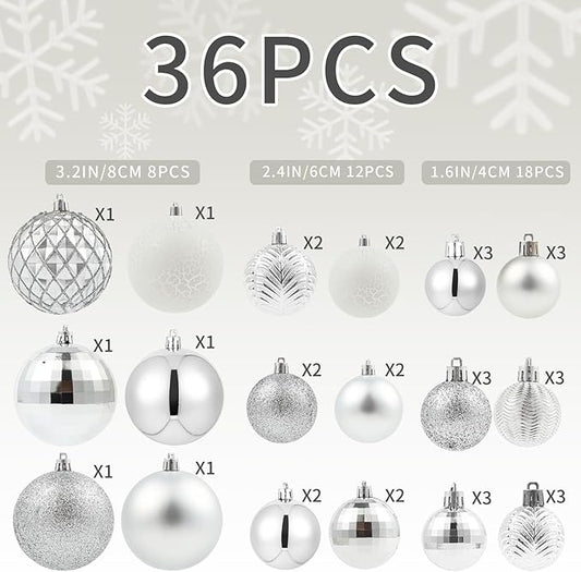 LANGXUN 36pcs Silver Christmas Tree Decorations Balls, Bolas De Navidad, 2025 Christmas Decor, Indoor Outdoor Shatterproof Christmas Ornaments, Xmars Party Wedding Suppiles
