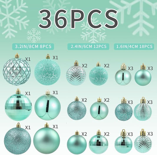 LANGXUN 36pcs Peacock Christmas Tree Decorations Balls, Bolas De Navidad, 2025 Christmas Decor, Indoor Outdoor Shatterproof Christmas Ornaments, Xmars Party Wedding Suppiles