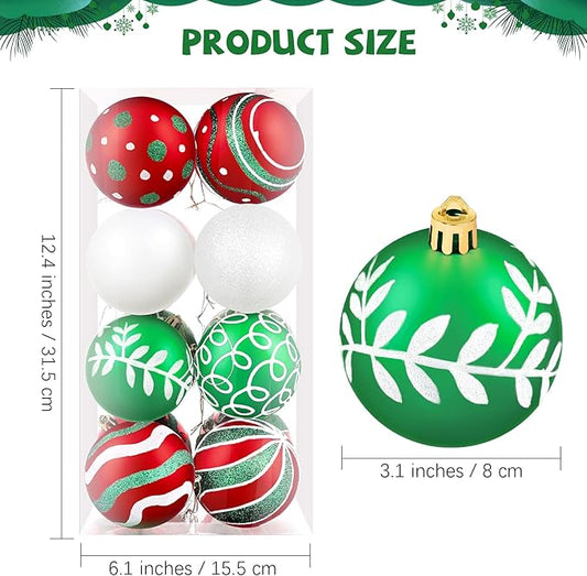 MCEAST 16 Pieces 3.15 Inches Christmas Balls Christmas Tree Pendants Shatterproof Decorative Baubles Balls for Christmas Tree Decoration, Red, Green, White