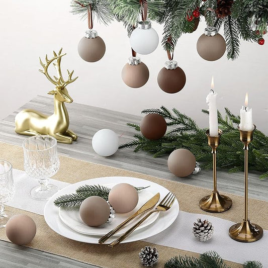 24 Pcs Neutral Matte Christmas Ball Ornaments 2.4 Inch Rustic Boho Brown Black Ivory Terracotta Xmas Bulbs Ornament Vintage Xmas Baubles Modern Christmas Decor for Tree Farmhouse Decor