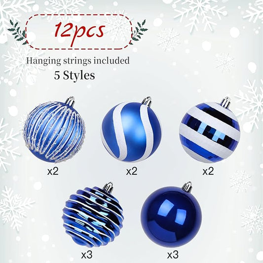 SHareconn 80mm Christmas Balls Ornaments,12PCS Colored Shatterproof Plastic Decorative Hanging Tree Decorations Baubles Set for Xmas Tree Decor Holiday Party Wedding Decoration with Lanyard,Blue&White