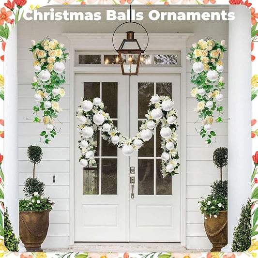 Woration 10pcs Christmas Balls Ornaments Set Velvet Wrapped Plastic Ball Hanging Decoration 3 Size for Xmas Tree Festival Home Wedding Holiday Party Decor - White