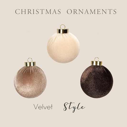 18PCS Velvet Christmas Ornaments – Large Matte Flocked Shatterproof Baubles for Xmas Tree Decoration, Neutral Hanging Ornaments for Holiday Home Décor (Dark Light Brown, Cream White, 3 Inch / 8 cm)