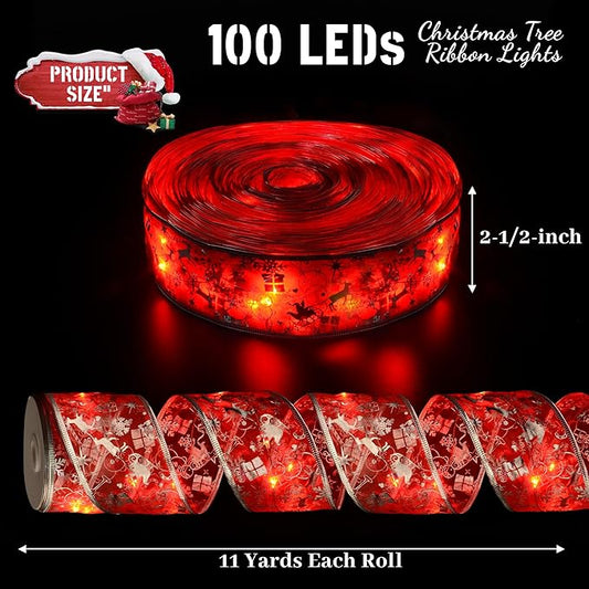Christmas Decorations, 2.5Inch x 33Ft 100 Led Christmas Tree Ribbon Lights with Remote Control, Battery Operated & USB Powered 8 Lighting Modes Fairy String Lights with Timer for Xmas Decor
