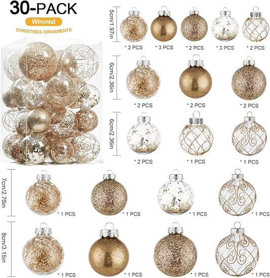 Wironlst Christmas Ball Ornaments Shatterproof Clear Large Plastic Hanging Ball Decorative Baubles Set with Stuffed Delicate Decorations (Multi-Size, Champagne)