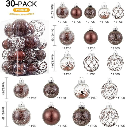 Wironlst Christmas Ball Ornaments Shatterproof Clear Large Plastic Hanging Ball Decorative Baubles Set with Stuffed Delicate Decorations (Multi-Siz, Brown)
