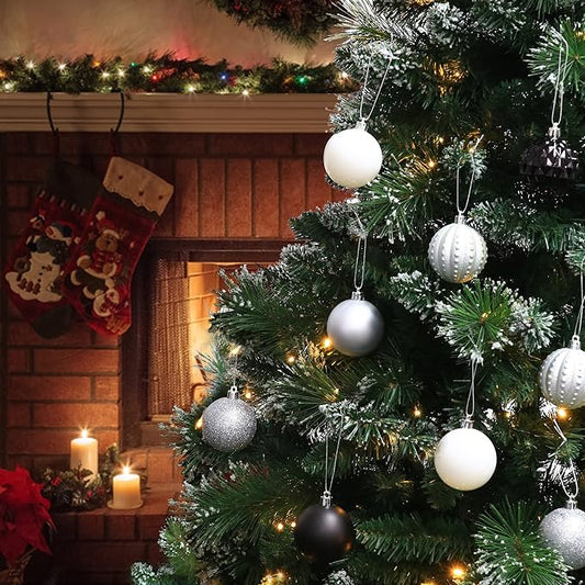 45Pcs 6cm Christmas Glitter Ball Ornaments, Shatterproof Plastic Xmas Tree Decorations for Holidays, Weddings, Parties - Black, White, Silver