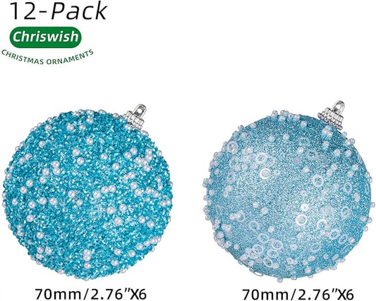 12CT Christmas Ball Ornaments, Baby Blue Christmas Ball Decorations Shatterproof Plastic Hanging Pearl Balls for Holiday Party(70mm/2.76")