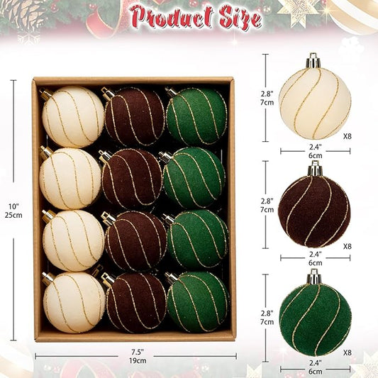 24PCS Velvet Christmas Ball Ornaments Set, 2.36" Shatterproof Baubles for Christmas Tree Decorations, Gold-Lined Hanging Baubles with Velvet Finish for Thanksgiving Holiday Party Décor, Multicolour