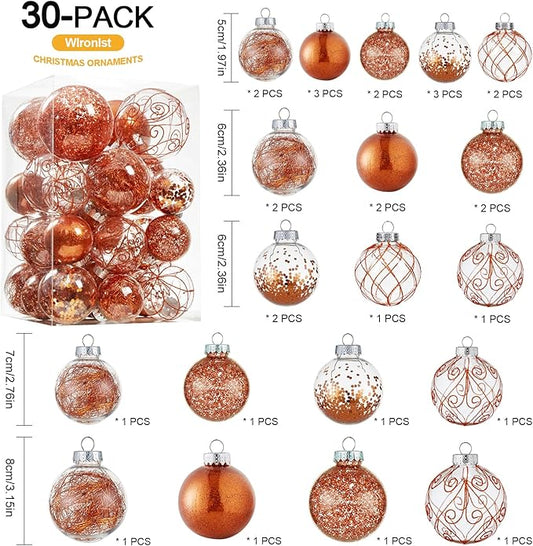 Wironlst Christmas Ball Ornaments Shatterproof Clear Large Plastic Hanging Ball Decorative Baubles Set with Stuffed Delicate Decorations (Multi-Siz, Orange)