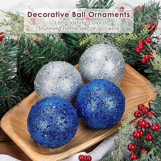 4" Large Christmas Balls Ornaments 6 Pcs Shatterproof Big Navy Blue Christmas Ornaments for Tree Glitter Big Xmas Tree Ornament for Xmas Halloween Holiday Wedding Party Decoration