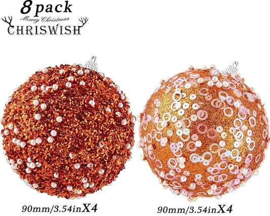 Orange Christmas Ball Ornaments, Christmas Ball Decorations Shatterproof Plastic Hanging Pearl Balls for Holiday Party(90mm/3.54", 8ct)