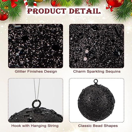 4" Large Christmas Balls Ornaments 6 Pcs Shatterproof Big Black Christmas Ornaments for Tree Bulk Glitter Big Xmas Tree Ornament for Xmas Halloween Holiday Wedding Party Decoration