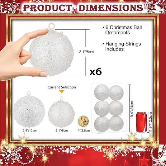 3.15" Large Christmas Balls Ornaments 6 Pcs Shatterproof Big White Christmas Ornaments for Xmas Tree Bulk Glitter Big Xmas Tree Ornament for Trees Halloween Holiday Wedding Party Decoration