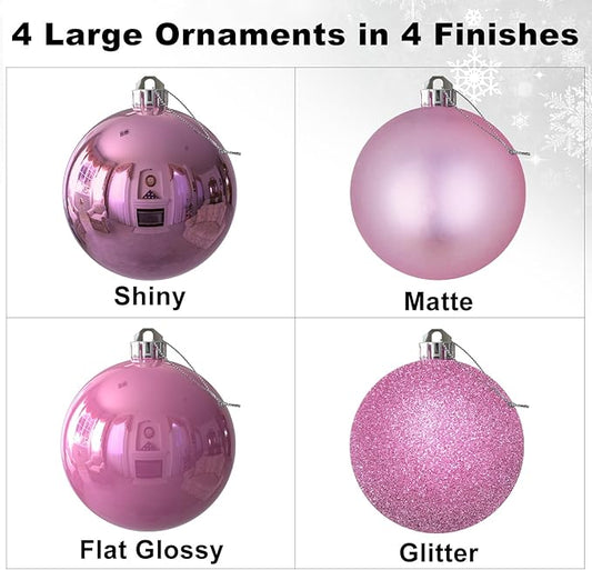 Bubblegun Pink 4.0" Large Christmas Balls - Christmas Tree Decoration Ornaments Shatterproof Hanging Balls for Birthday Halloween Holiday Wedding Decorations Set of 4pcs
