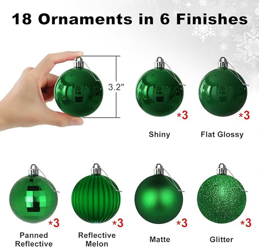 Emerald Green 3.2" Large Christmas Balls - Christmas Tree Decoration Ornaments Shatterproof Hanging Balls for Birthday Halloween Holiday Wedding Decorations Set of 18pcs